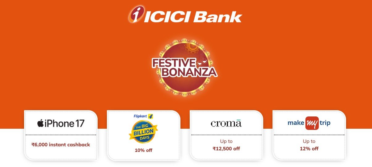 Mumbai: ICICI Bank’s annual ‘Festive Bonanza’ is back with lots of attractive deals on big brands across online shopping, mobiles, electronics, fashion, travel, grocery, quick commerce, furniture, and dining categories. With discounts/ cashback of up to ₹50,000, the Bank’s customers can access these offers by using their credit/debit cards, internet banking, cardless EMI and consumer finance. Additionally, they can opt for no-cost EMI by using their credit/debit cards.