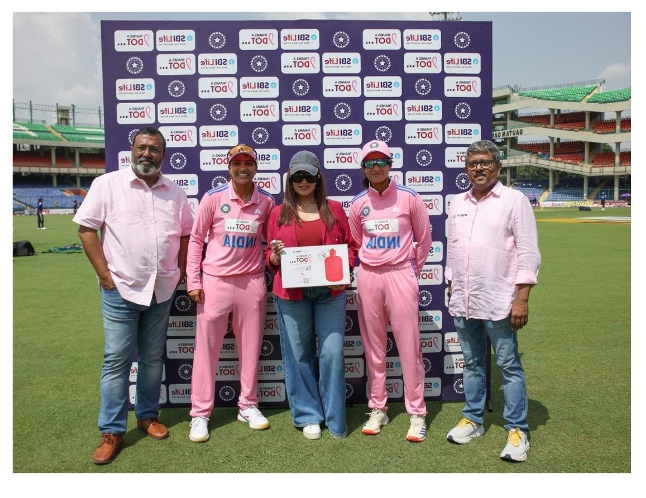 Ahead of the match, in an exclusive pre-match ceremony Mr. M. Anand, President & CDO, SBI Life along with Mr. Ravindra Sharma, Chief of Brand, Corporate Communications & CSR, SBI Life and Ms. Mahima Chaudhry, Actress & breast cancer survivor handed over the specially designed Team India’s Thanks-a-Dot Pink Jersey to India’s Women’s team captain and players – Harmanpreet Kaur, Pratika Rawal, and Sneh Rana, which were worn by the players during the match, symbolising the deep commitment to raising awareness for women’s health.