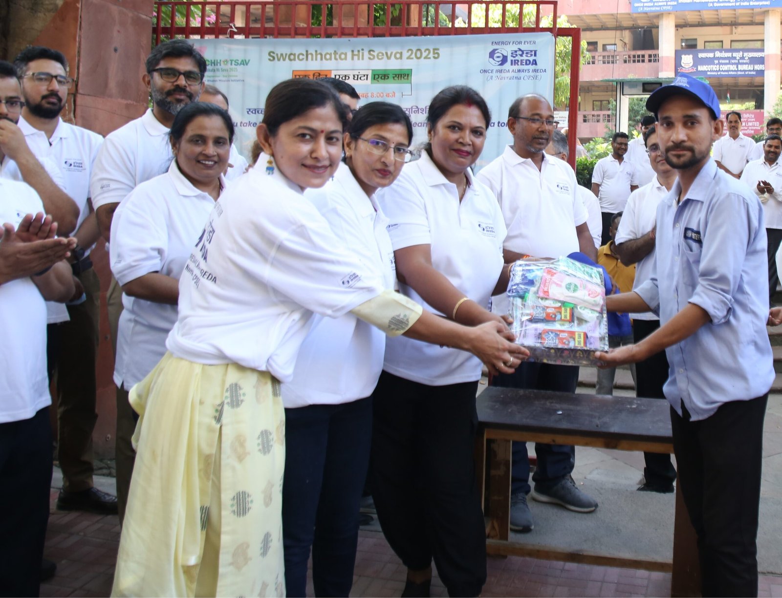 The drive featured cleanliness and awareness activities led by IREDA employees, along with the felicitation of Safai Mitras with sanitary kits in recognition of their services.